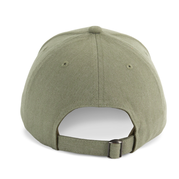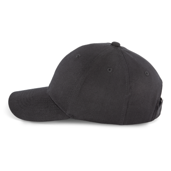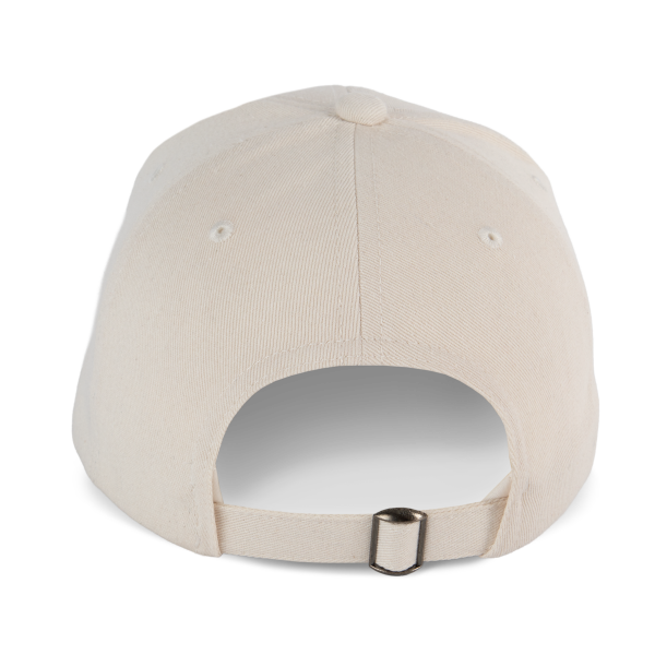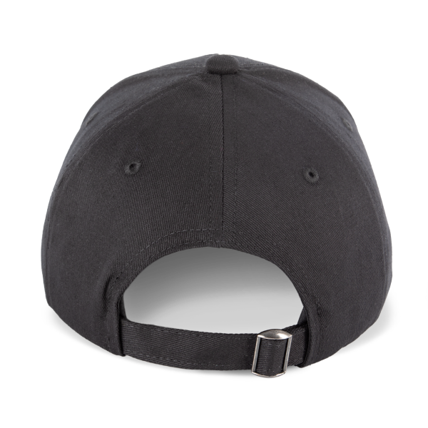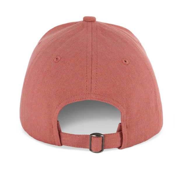 De pet is voorzien van een verstelbare sluiting met metalen gesp en automatisch vergrendelende lus, waardoor hij eenvoudig aan te passen is aan verschillende hoofdmaten.