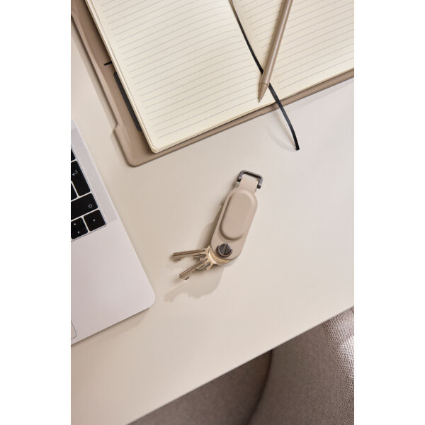 De sleutel organizer is vervaardigd uit RCS-gecertificeerd gerecycled ABS met een matte PU-coating en bevat 15% gerecycled materiaal. Compatibel met Apple Find My en Android Find Hub en voorzien van een vervangbare CR2032 batterij met een levensduur tot circa één jaar voor langdurig dagelijks gebruik.