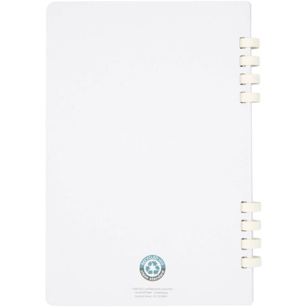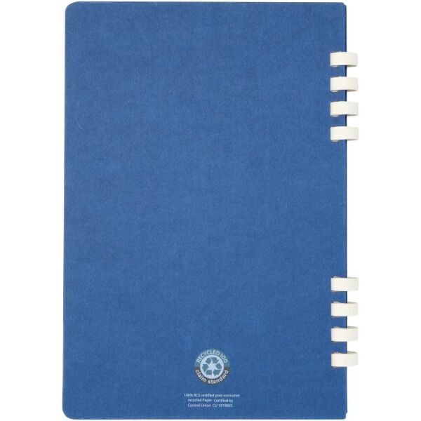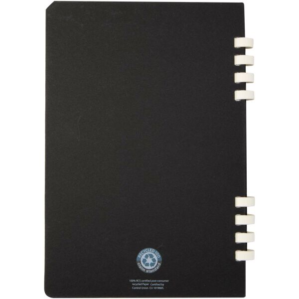 Het notitieboek is volledig gemaakt van RCS-gecertificeerd gerecycled papier en kan na gebruik eenvoudig worden gerecycled. Daarmee is dit een functioneel en duurzaam relatiegeschenk voor dagelijks gebruik.