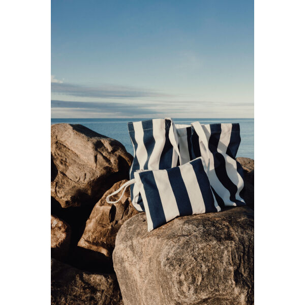 De tas is gemaakt van stevig 390 GSM-canvas en uitgevoerd met een veilige ritssluiting en handige draaglus. Het klassieke tweekleurige streepmotief zorgt voor een tijdloze en verzorgde uitstraling.