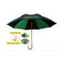 27 inch regenboog paraplu met 16 panelen in 190T Pongee met houten schacht, fiberglas baleinen, zwart vergulde metalen punten en top. Gebruik deze vrolijke en kleurrijke regenboogparaplu om droog te blijven tijdens de regen. Met dit ontwerp zult je zeker opvallen.27 Inch paraplu met doek in regenboog design, metalen stok en punt, kunststof tips en houten handvat. 16 panelen.