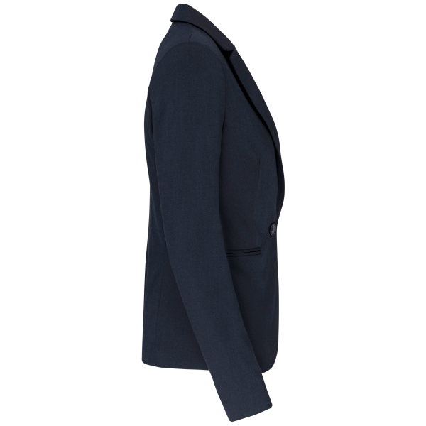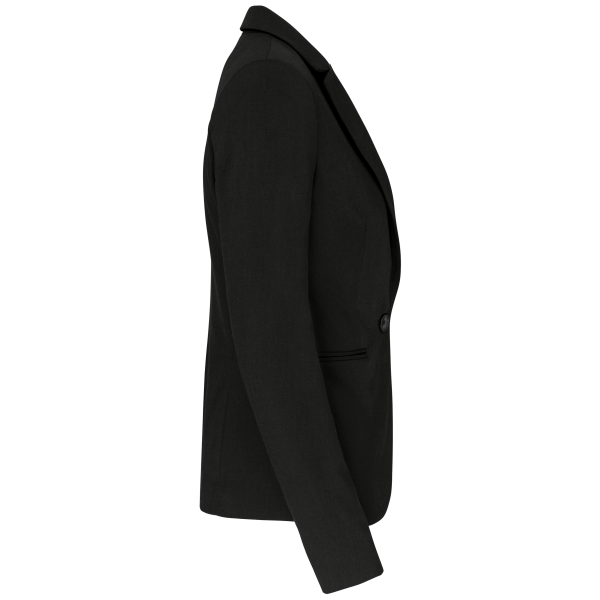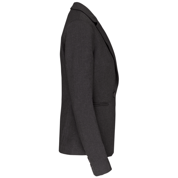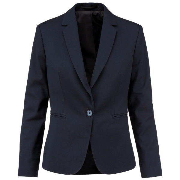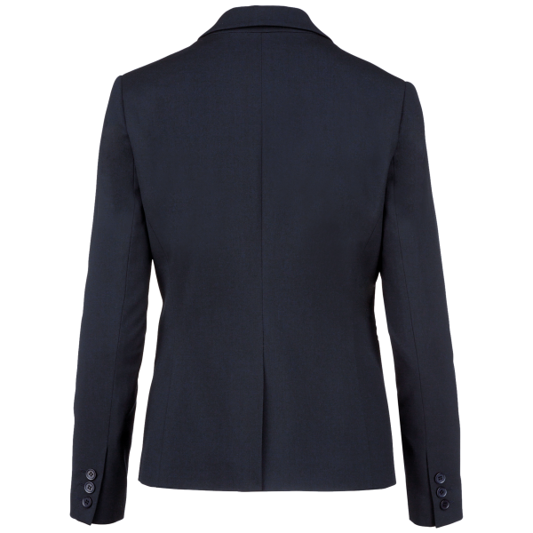 64% polyester / 34% viscose / 2% elasthan. Voering 100% tafpolyester. Jas met 1 knoop. 2 omzoomde zakken aan de voorkant. 2 binnenzakken met knoop. Mouwuiteinde met 3 knopen. 1 ruimtesplit op de achterkant.