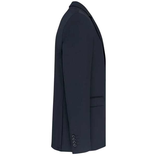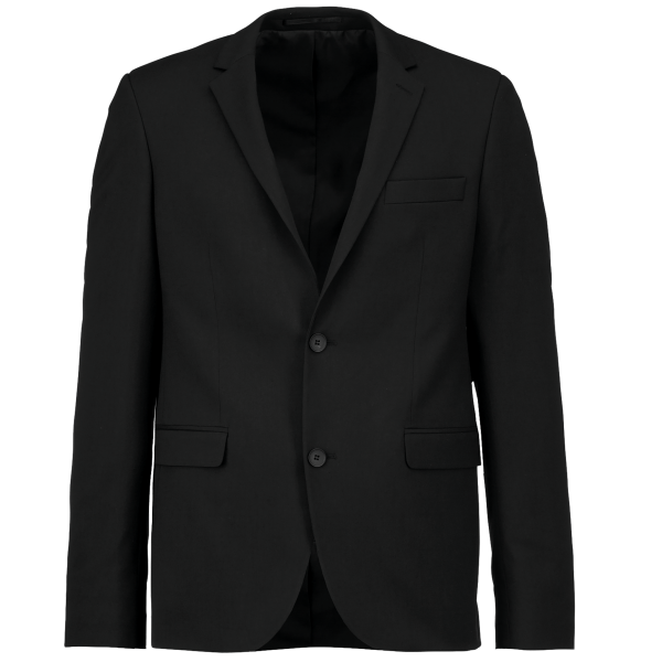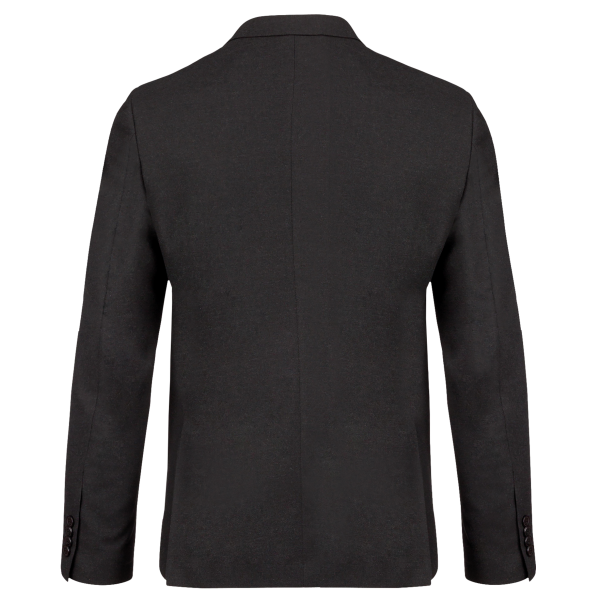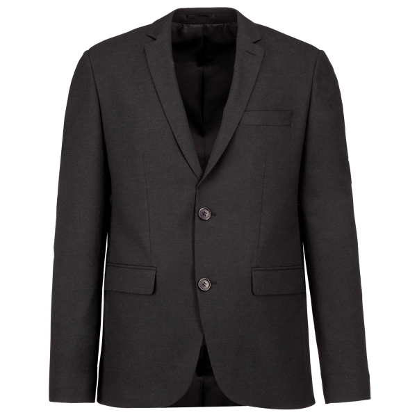 64% polyester / 34% viscose / 2% elasthan. Voering 100% tafpolyester. Jas met 2 knopen. 2 omzoomde zakken met klep aan de voorkant. 1 borstzakje. 2 binnenzakken met knoop en 1 gsm-zak. Mouwuiteinde met 4 knopen. 2 ruimtesplitten op de achterkant. 1 verborgen drukkersrits aan de linkerkant vooraan.