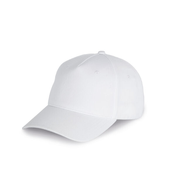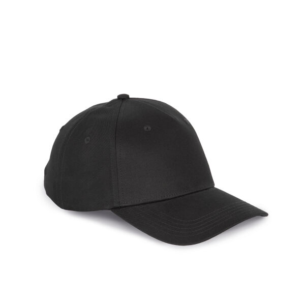100% katoen. Pet met 5 panelen bestaande uit 60% gerecycled katoen pré-consumer en 40% zuiver katoen. Verstelbare sluiting met metalen gesp.