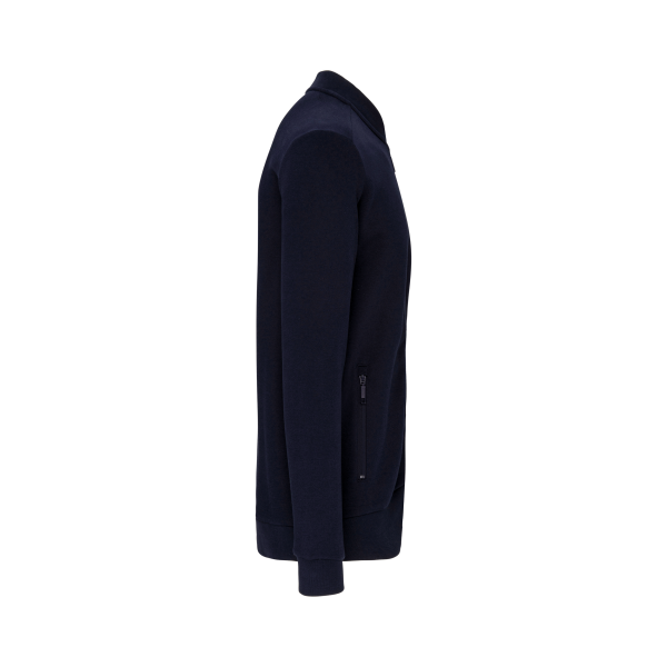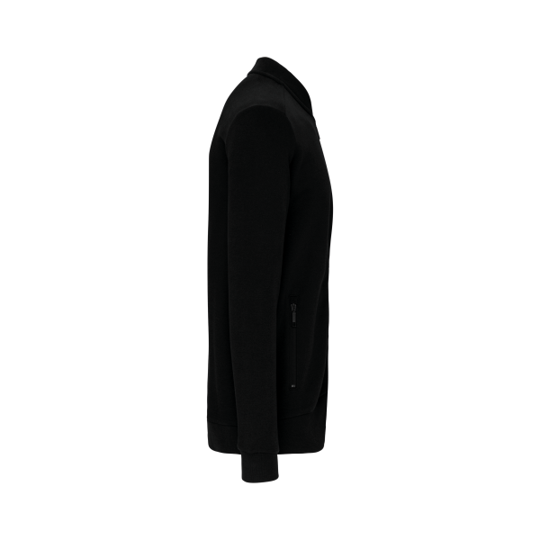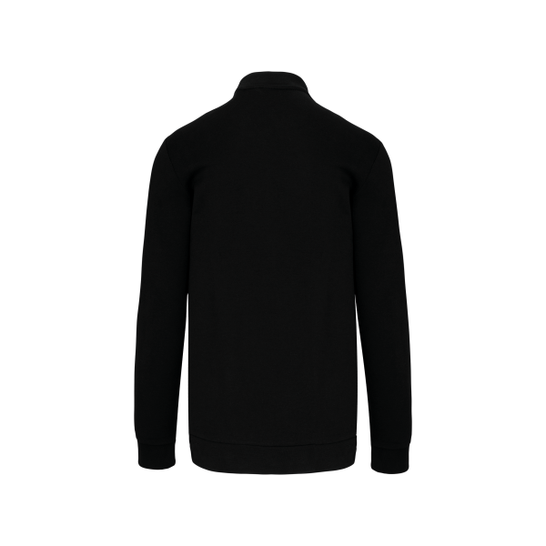80% katoen / 20% polyester. Sweat molleton 3 draden met LSF-behandeling (Low Shrinkage Fleece). Wasbaar op 60°C. Ritssluiting en 2 toon-op-toon ritszakken aan de voorkant. Nektape met visgraatmotief. Ribboord aan de mouwuiteinden en de onderkant. Gecertificeerd STANDARD 100 by OEKO-TEX®N° CQ1007/7, IFTH.